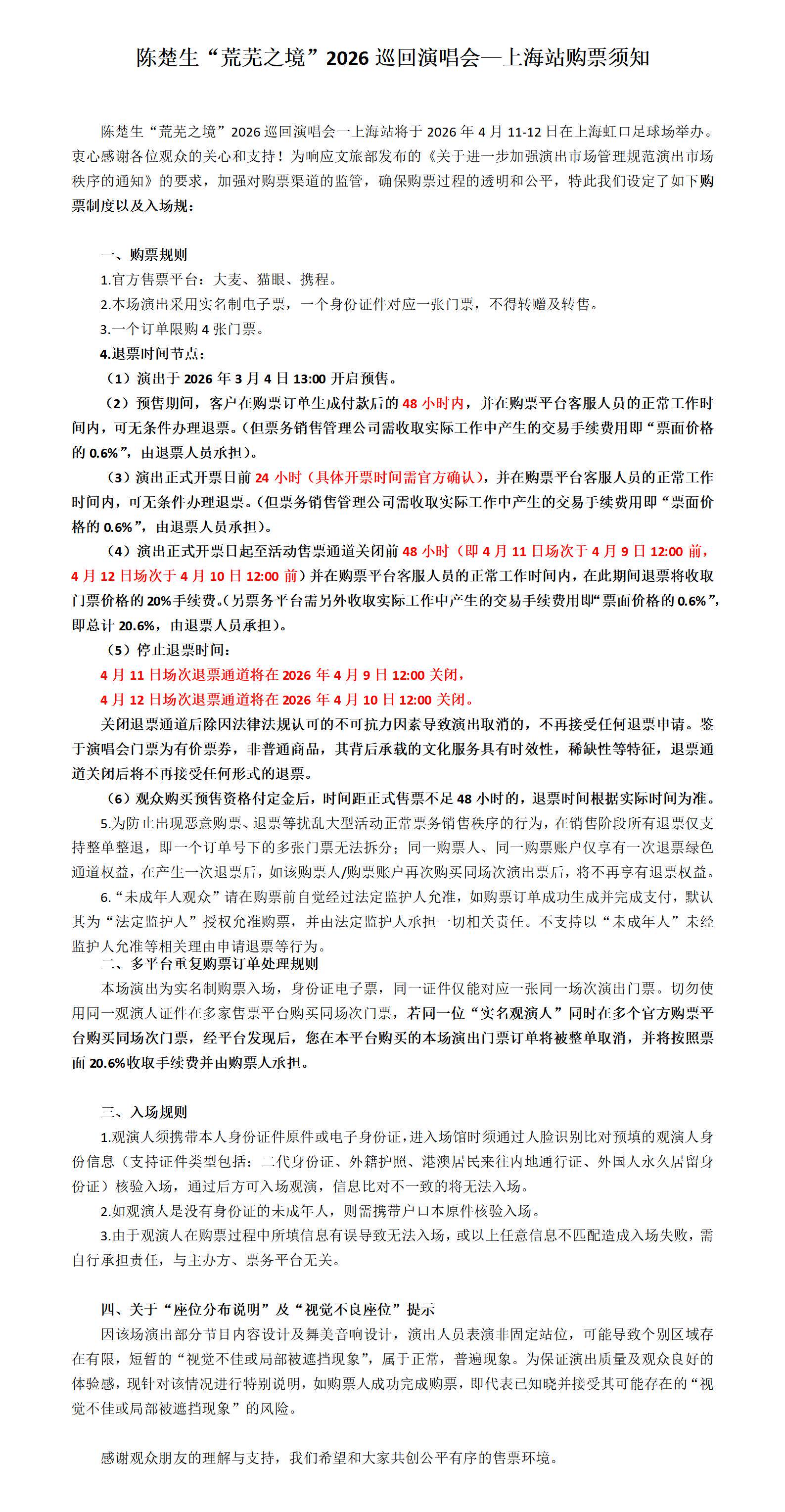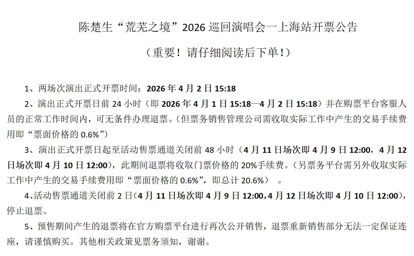 1、【上海】陈楚生“荒芜之境”2026巡回演唱会一上海站【网上订票】门票多少钱?