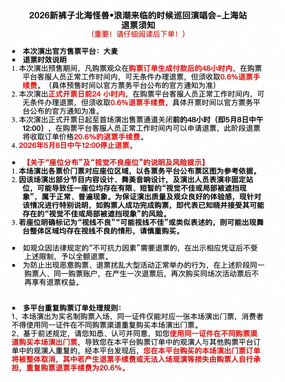 2、【上海】2026新裤子北海怪兽?浪潮来临的时候巡回演唱会-上海站【网上订票】门票怎么买票?