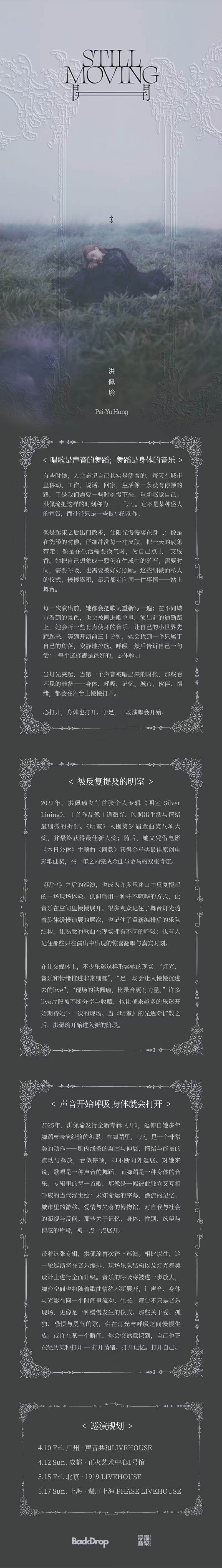 演出名称:【广州】洪佩瑜「开 Still Moving」2026巡演广州站【网上订票】演出时间:2026.04.10 周五 20:00