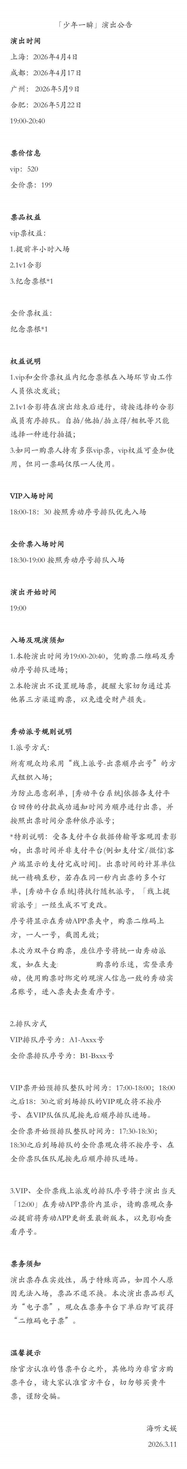 2、【广州】「少年一瞬」2026徐秉龙巡演 广州站【网上订票】门票怎么买票?