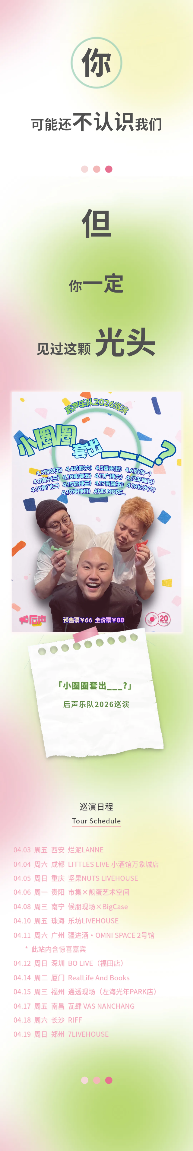 2、【深圳】「小圈圈套出___?」后声乐队2026巡演 深圳站【网上订票】门票怎么买票?
