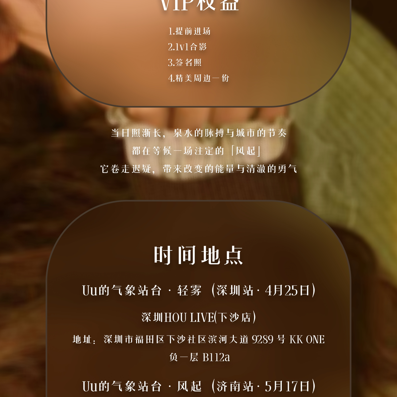 演出名称:【深圳】Uu的气象站台 · 轻雾 2026巡演深圳站【网上订票】演出时间:2026.04.25 周六 19:30