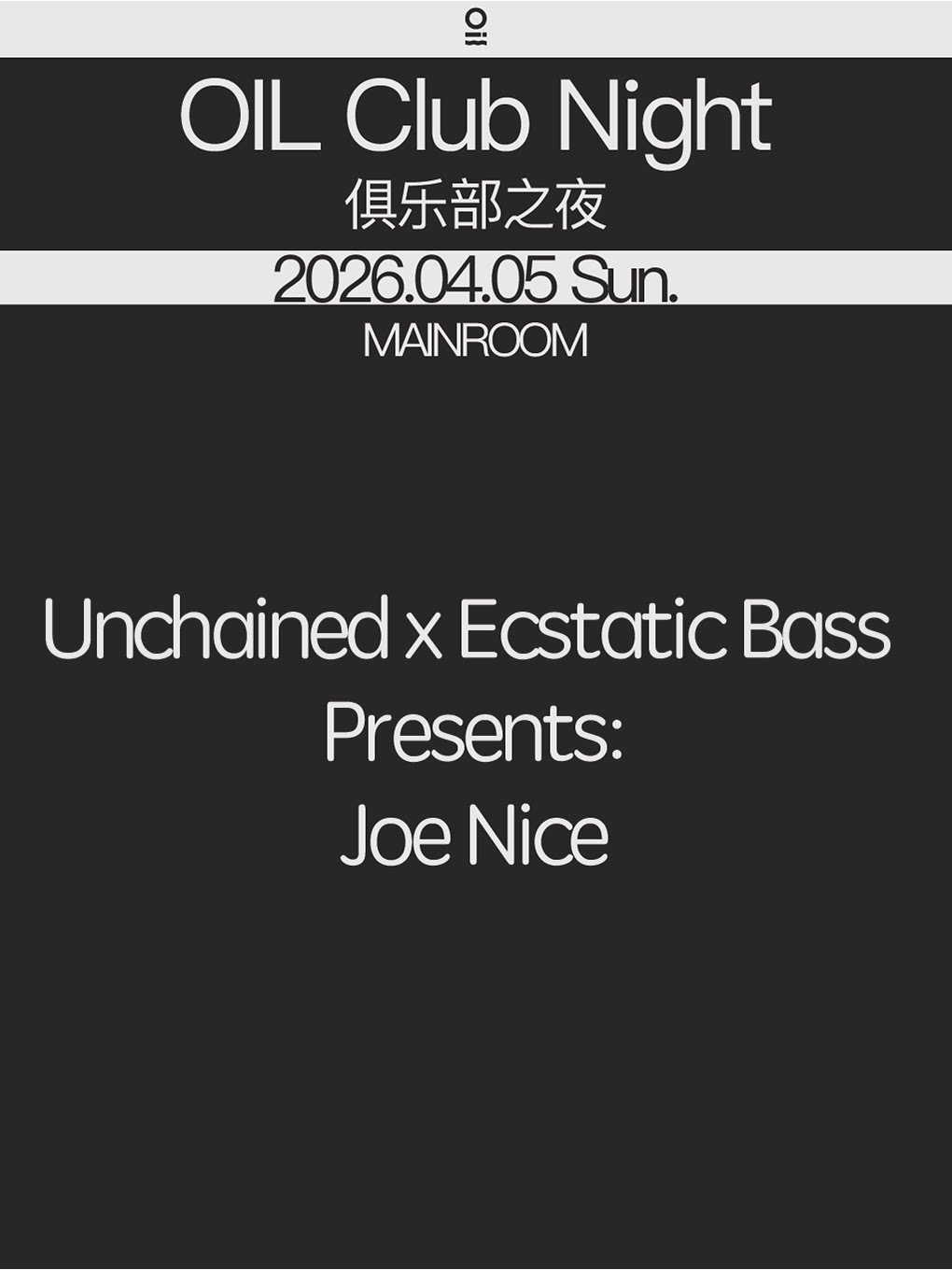 演出名称:【深圳】04/05 | OIL Club Night@Joe Nice (USA)【网上订票】演出时间:2026.04.05-04.06