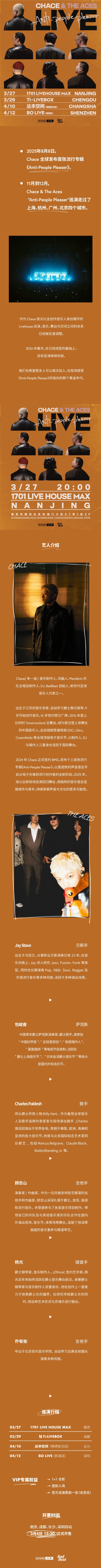 演出名称:【深圳】CHACE & THE ACES “Anti-People Pleaser”2026 巡演 — 深圳站【网上订票】演出时间:2026.04.12 周日 19:30
