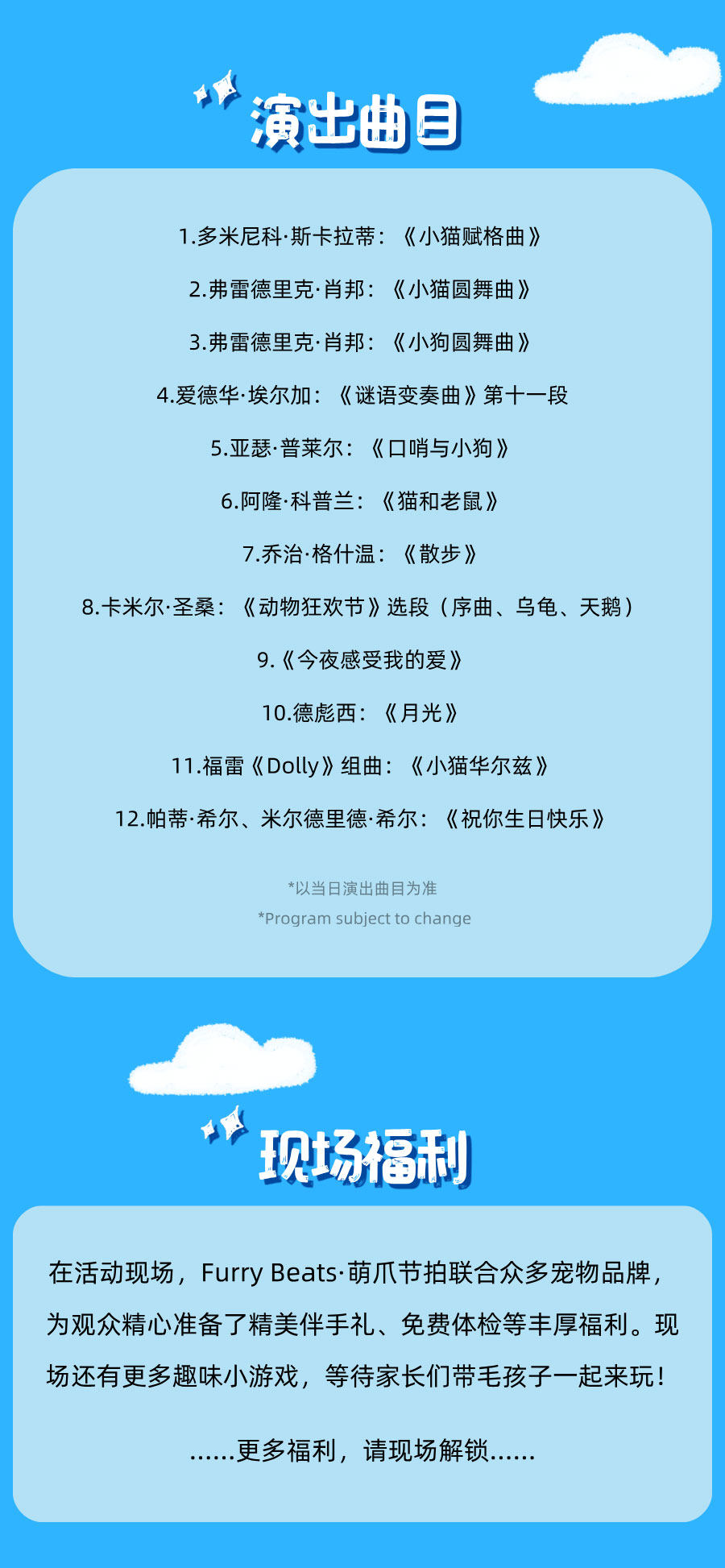 注:喵~汪~欢迎光临!目前本场演出仅限猫咪和狗狗入场。其他小动物们先别急,你们的舞台正在搭建中哦!