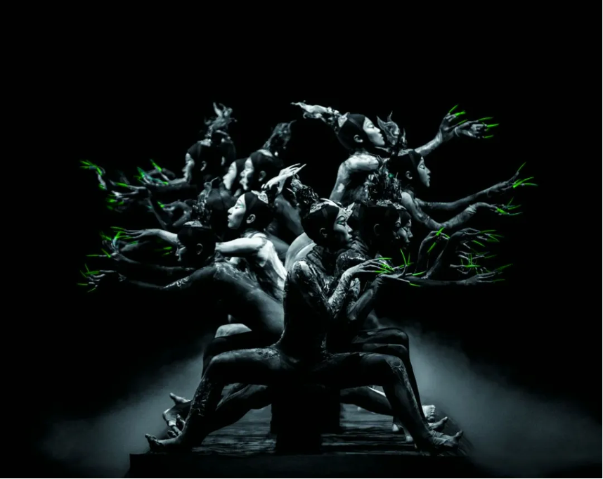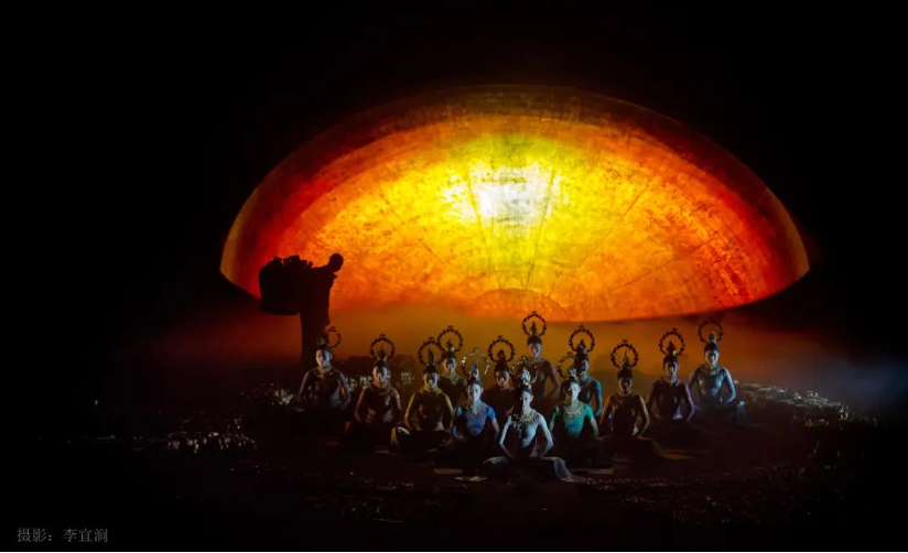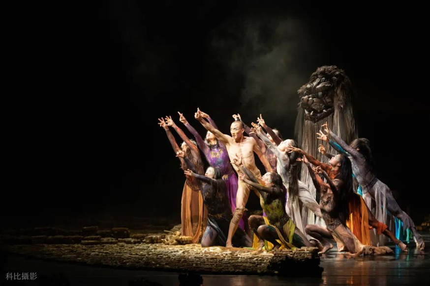 混沌中光明惊破黑暗,舞者如同先民一样自由起舞,舞者的身体依次发光发亮……整个舞台贯穿东方美学,将观众带入另一段时空之中。