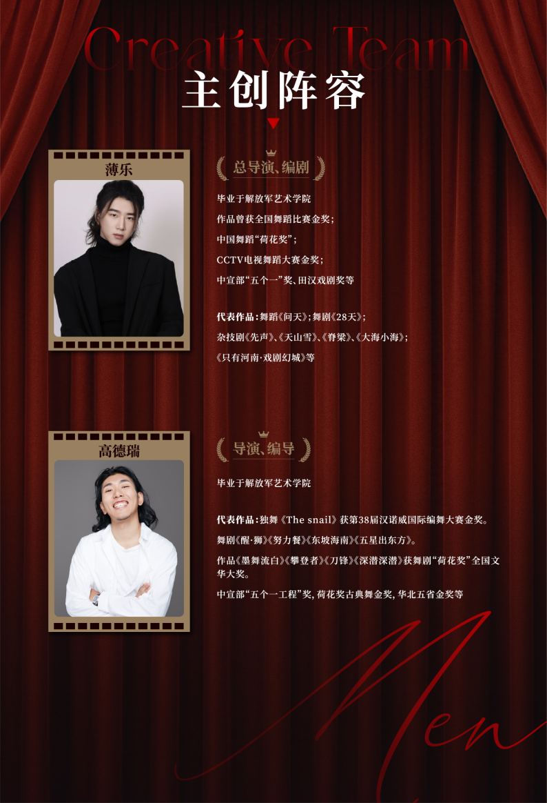 《MEN剧场》是以“男性”为叙事主体,以“舞蹈”为表达语言,致力于打造一个探索当代男性精神世界的艺术舞台。通过肢体与情感交织,展现男性群体在时代变迁中的多维形象,构筑一个引发普遍共鸣的人文艺术空间。它将坚持“为人民而舞”的初心,坚守文艺为人民服务的宗旨,以精湛的技艺和深刻的情感共鸣,呈现兼具思想深度与审美高度的舞台作品,让舞蹈不仅展现形体之美,更成为连接个体与时代、传递向上向善力量的桥梁。