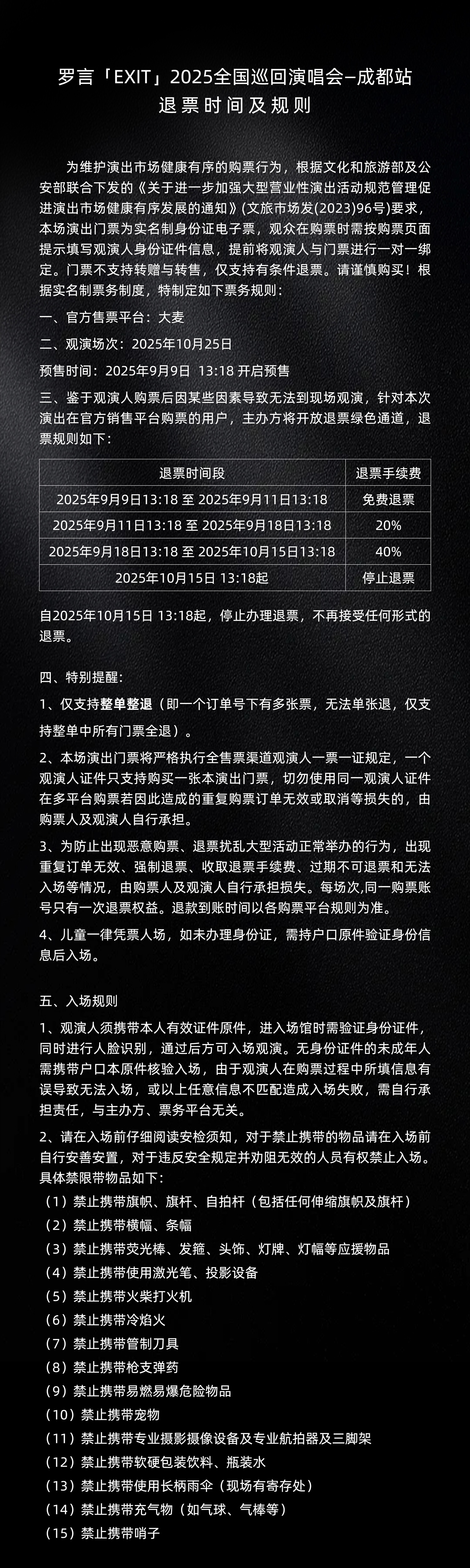 2、【成都】罗言「EXIT」2025巡回演唱会-成都站【网上订票】门票怎么买票?
