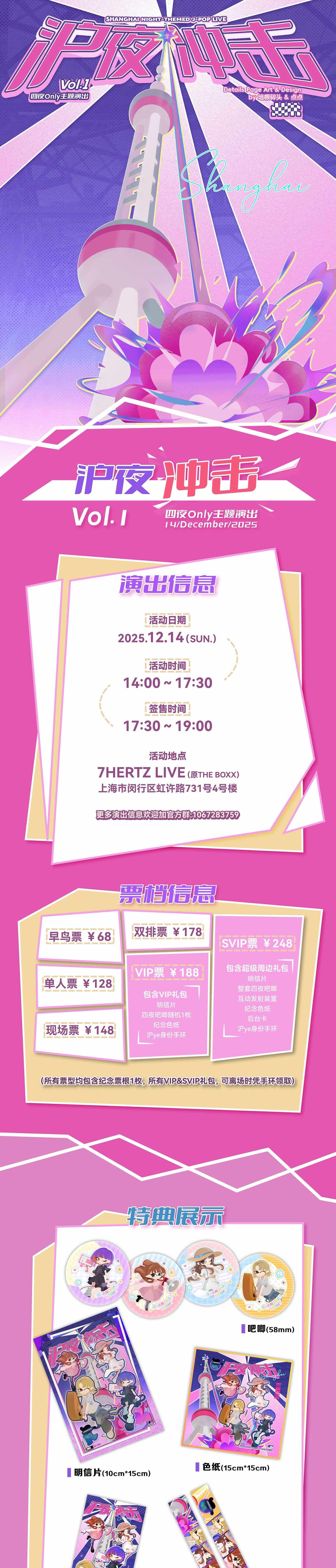 演出名称:【上海】沪夜冲击Vol.1 ——四夜Only主题演出【网上订票】演出时间:2025.12.14 周日 14:00