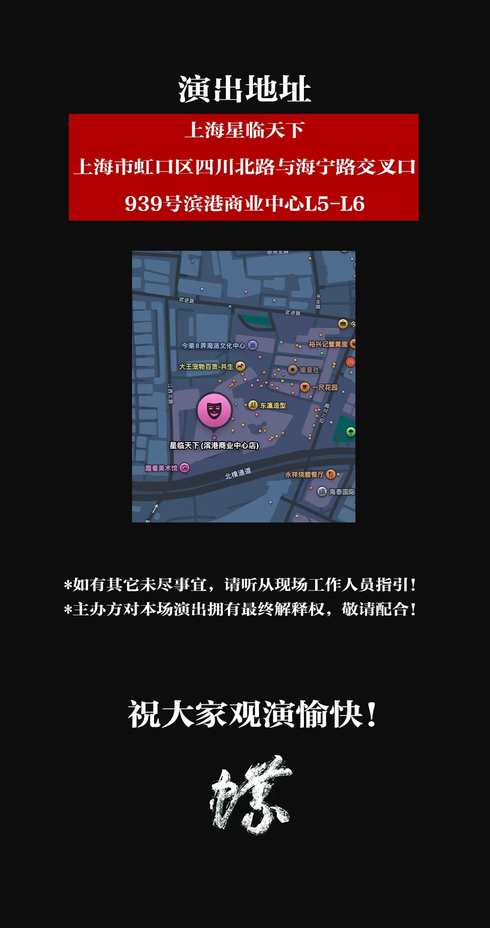 演出场馆:滨港商业中心-星临天下(L5)