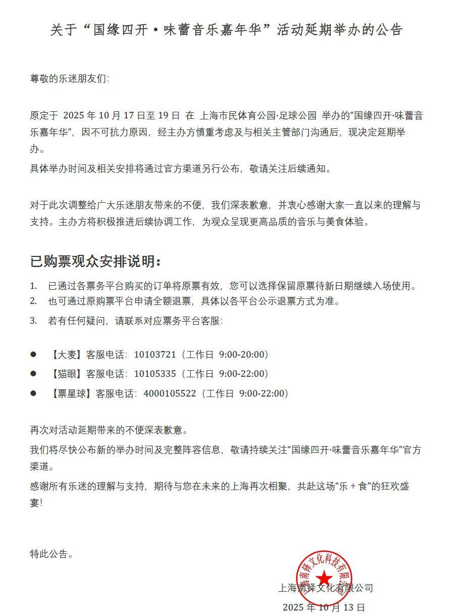 演出名称:【上海】《国缘四开·味蕾音乐嘉年华 》【网上订票】演出时间:时间延期待定