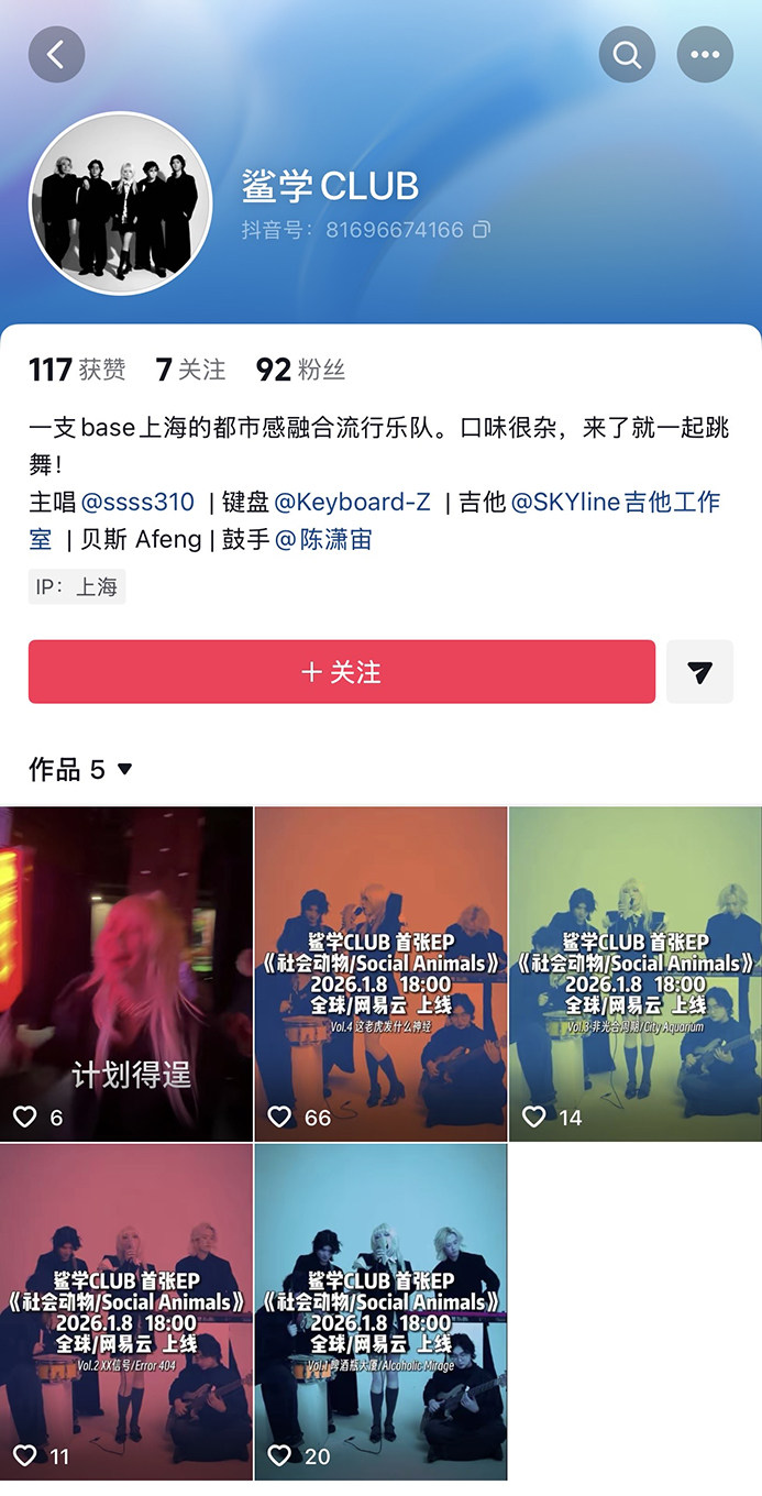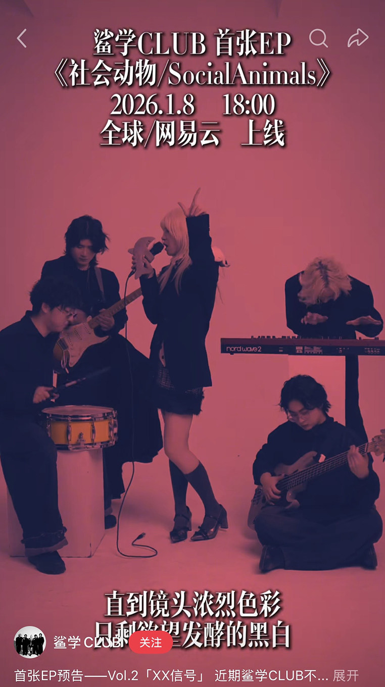 演出名称:【上海】鲨学事变3月1日 - “鲨学CLUB”首张EP 专场演出【网上订票】演出时间:2026.03.01 周日 21:00