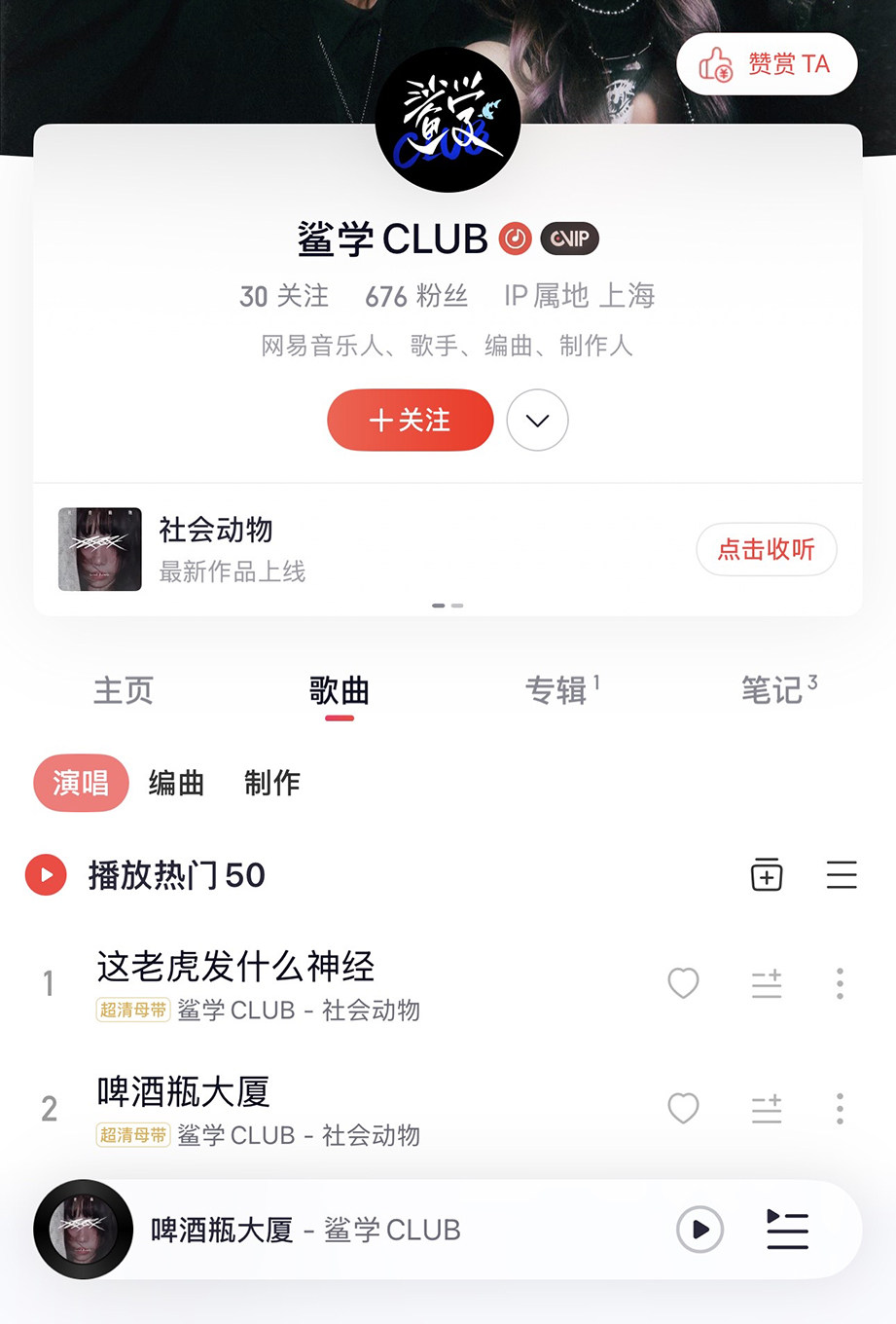 2025年2月14日,鲨学CLUB首家俱乐部不正式开业。我们坚持采样城市中黑夜或白天各个角落发生的故事,融合 jpop/funk/disco/R&B等风格,编写充满都市感和律动感的音乐。