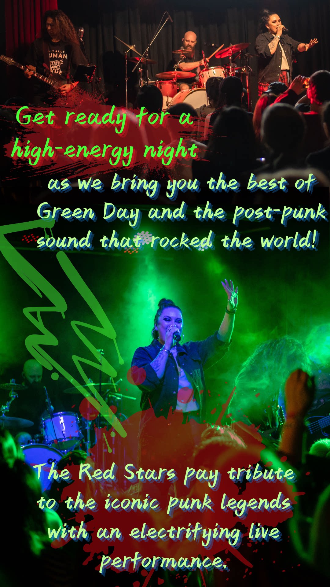 Get ready for a high-energy night as we bring you the best of Green Day and the post-punk sound that rocked the world! The Red Stars pay tribute to the iconic punk legends with an electrifying live performance.