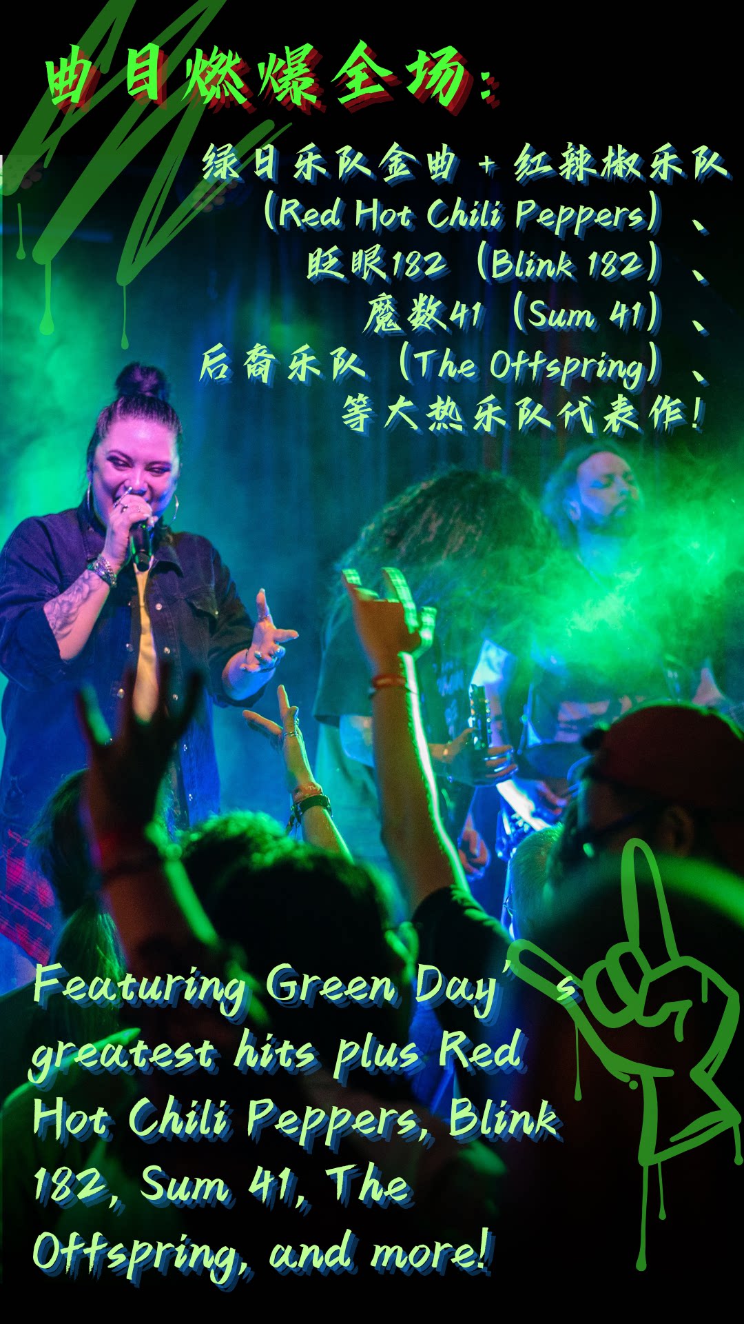 曲目燃爆全场: 绿日乐队金曲 + 红辣椒乐队(Red Hot Chili Peppers)、眨眼182(Blink 182)、魔数41(Sum 41)、后裔乐队(The Offspring)等大热乐队代表作!