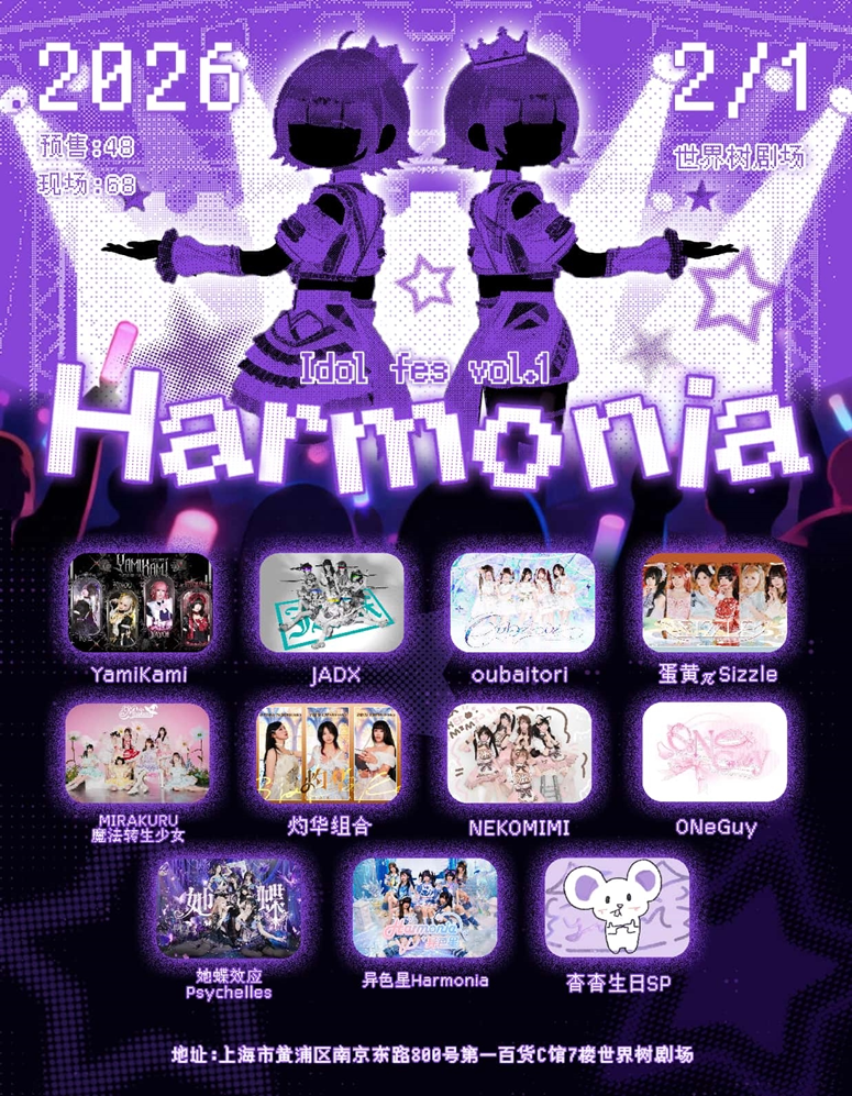 演出名称:【上海】Harmonia Fes vol.1 -杳杳生日SP-【网上订票】演出时间:2026.02.01 周日 17:10