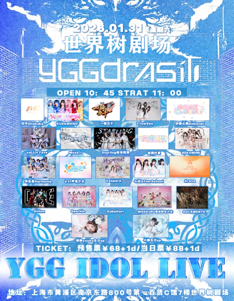 演出名称:【上海】YGG IDOL Fes -绵绵yuuka、小獭 生日sp-【网上订票】演出时间:2026.01.31 周六 11:00