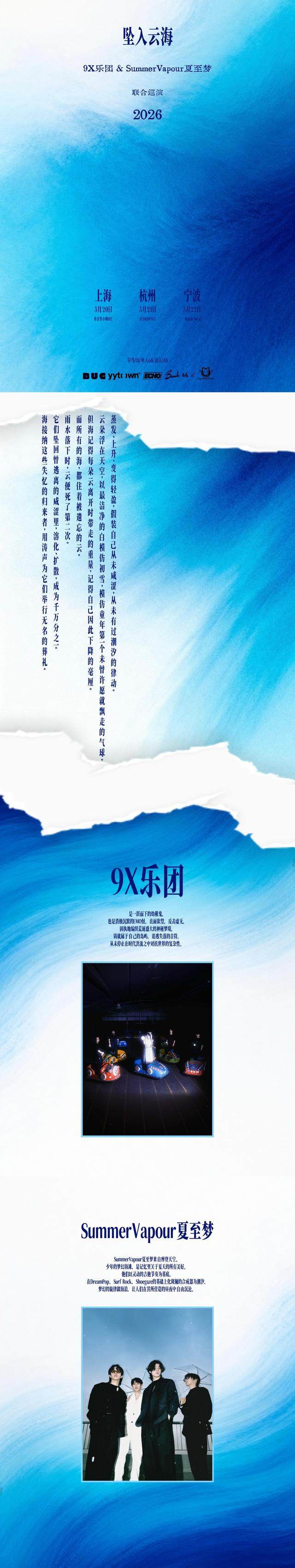 1、【上海】“坠入云海”9X乐团&SummerVapour夏至梦2026联合巡演 上海站【网上订票】门票多少钱?