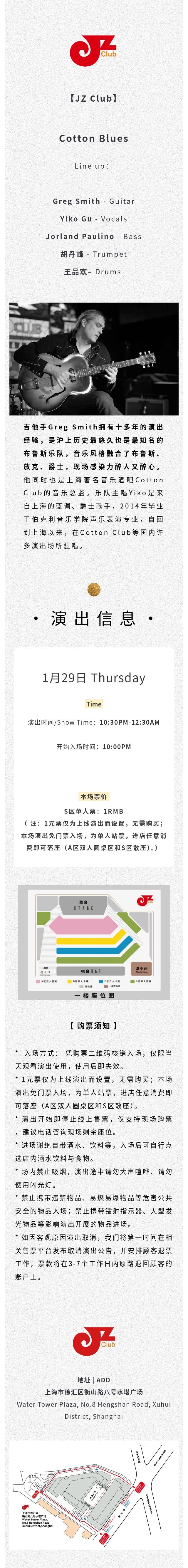 演出名称:【上海】【JZ Club】Cotton Blues【网上订票】演出时间:2026.01.29-01.30