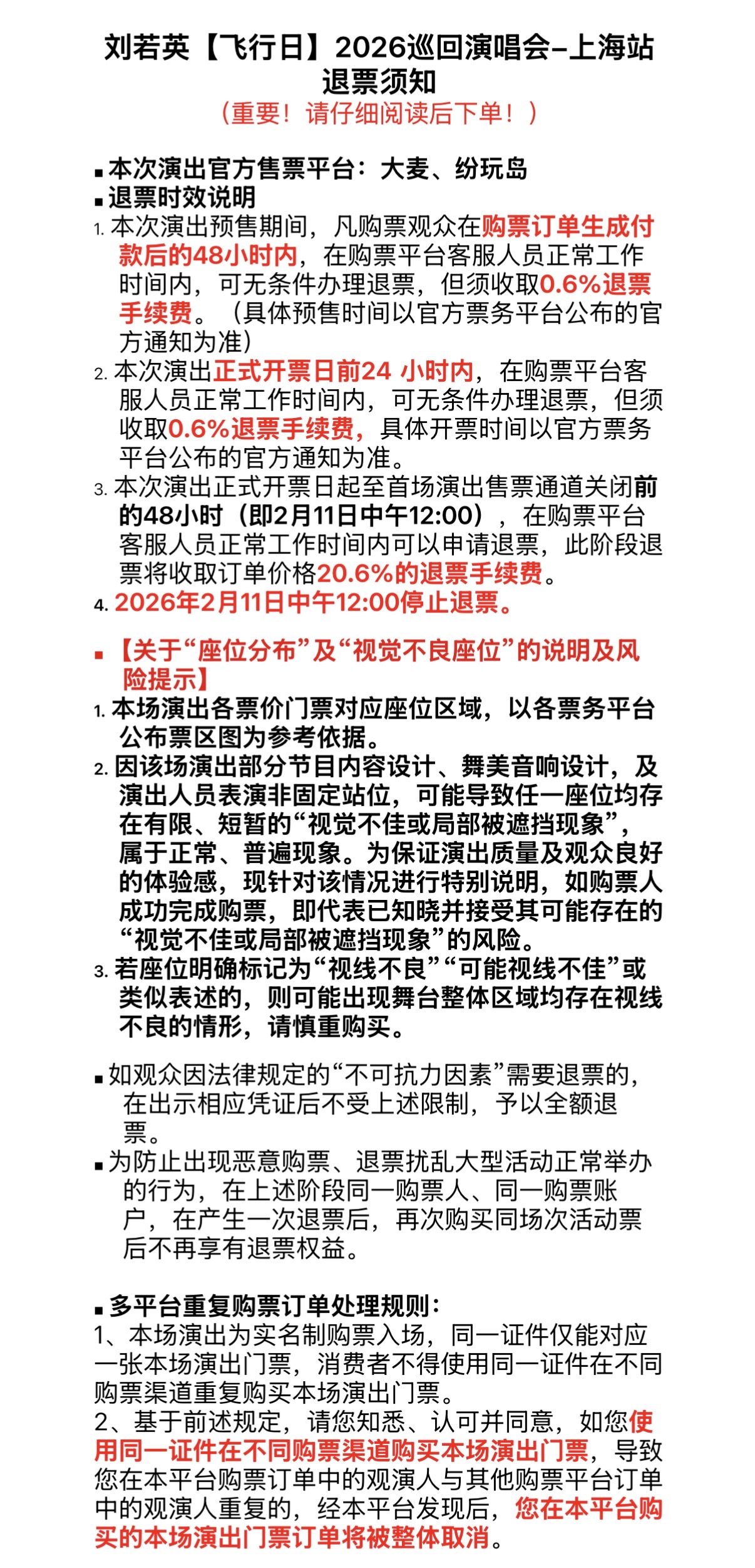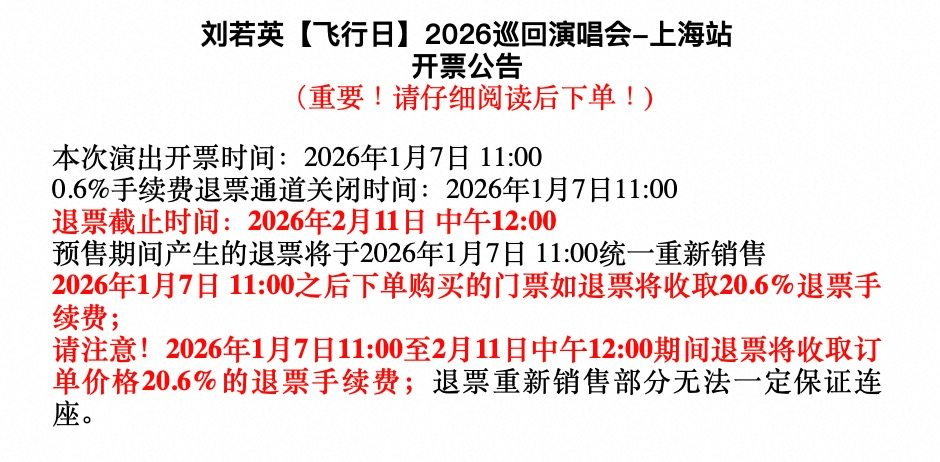 演出名称:【上海】刘若英【飞行日】2026巡回演唱会-上海站【网上订票】演出时间:2026.02.13-02.14