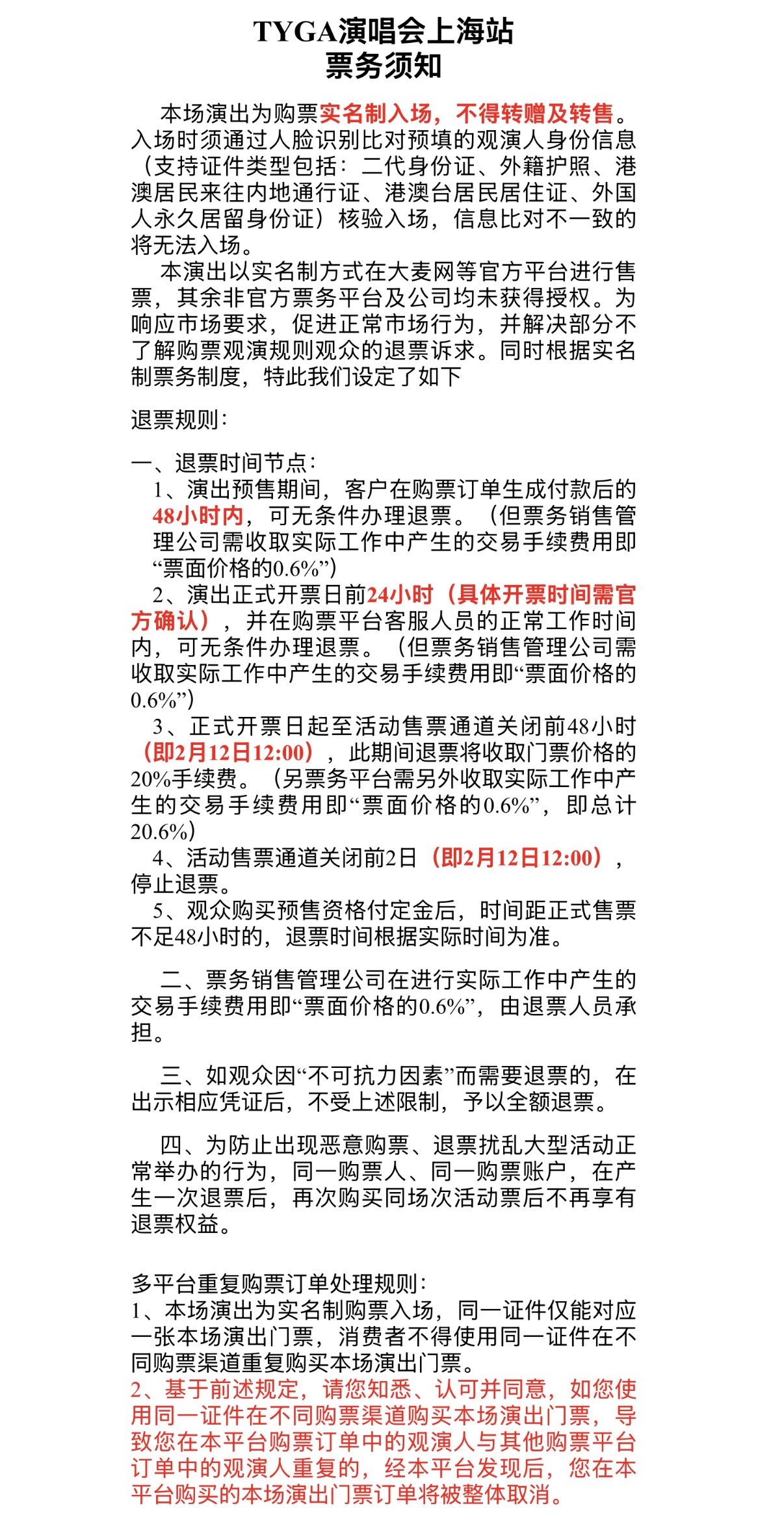 演出名称:【上海】TYGA演唱会上海站【网上订票】演出时间:2026.02.14 周六 19:30