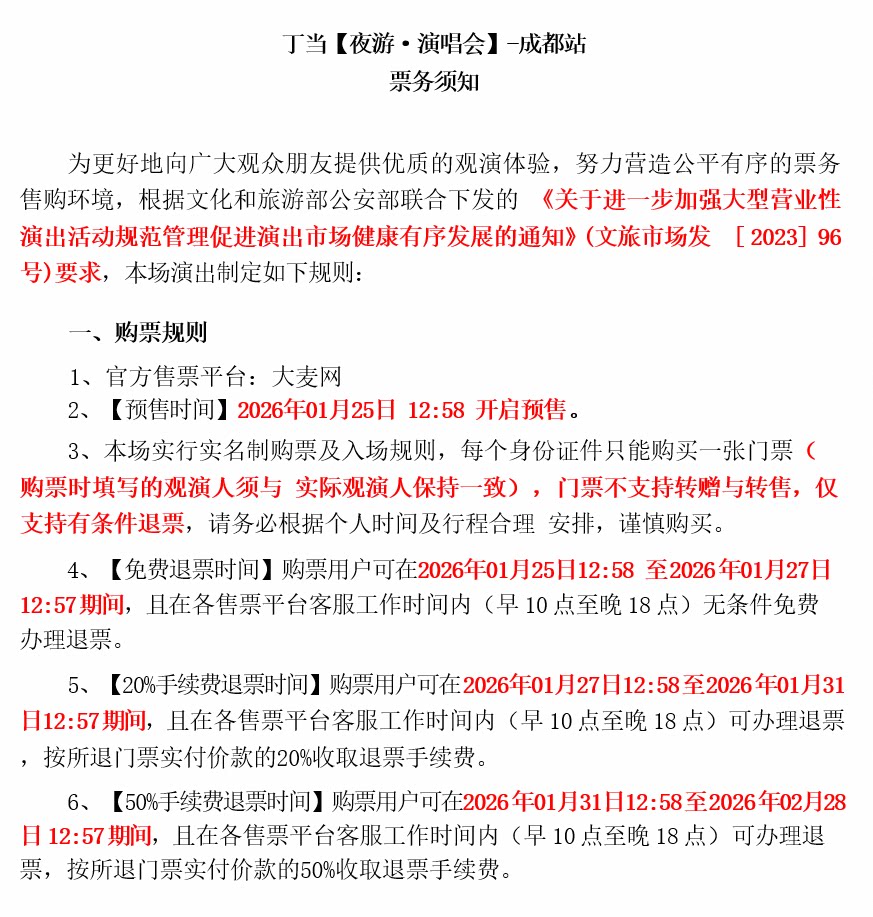 演出名称:【成都】丁当「夜游 A Night Tour」演唱会成都站【网上订票】演出时间:2026.03.21 周六 19:30