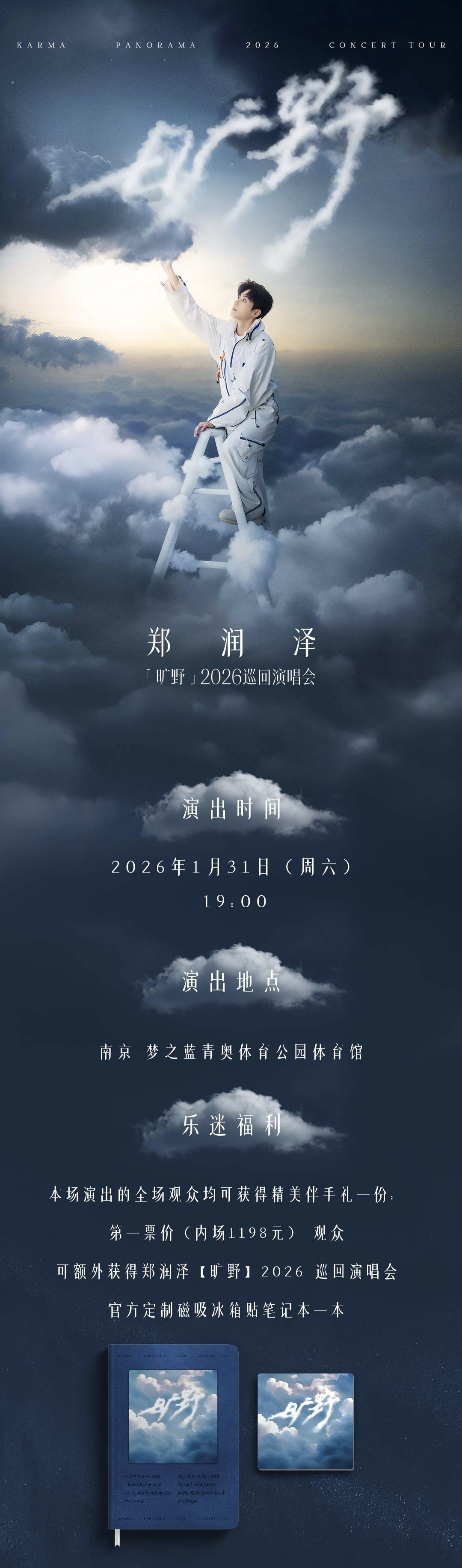演出名称:【南京】郑润泽「旷野」2026巡回演唱会-南京站【网上订票】演出时间:2026.01.31 周六 19:00