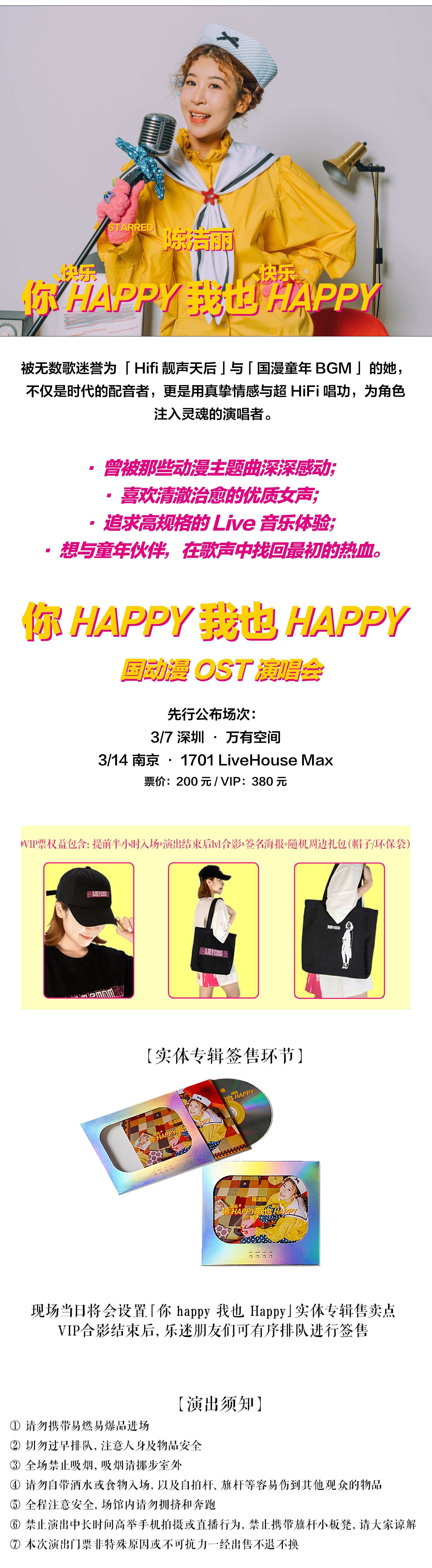 2、【南京】「你 Happy 我也 Happy」陈洁丽演唱会 南京站【网上订票】门票怎么买票?