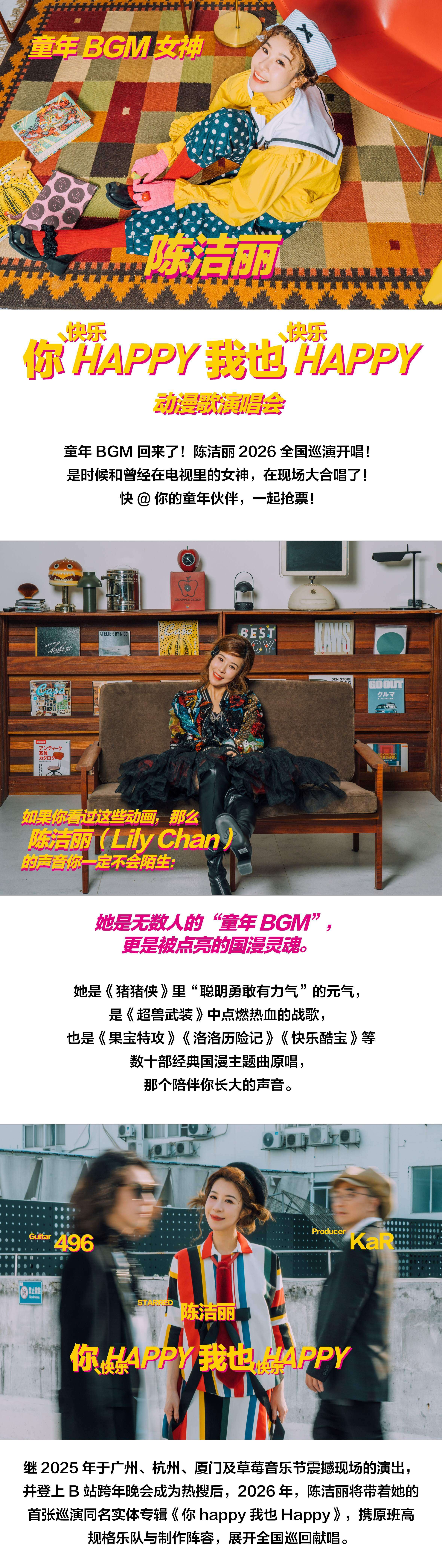 演出名称:【南京】「你 Happy 我也 Happy」陈洁丽演唱会 南京站【网上订票】演出时间:2026.03.14 周六 20:00