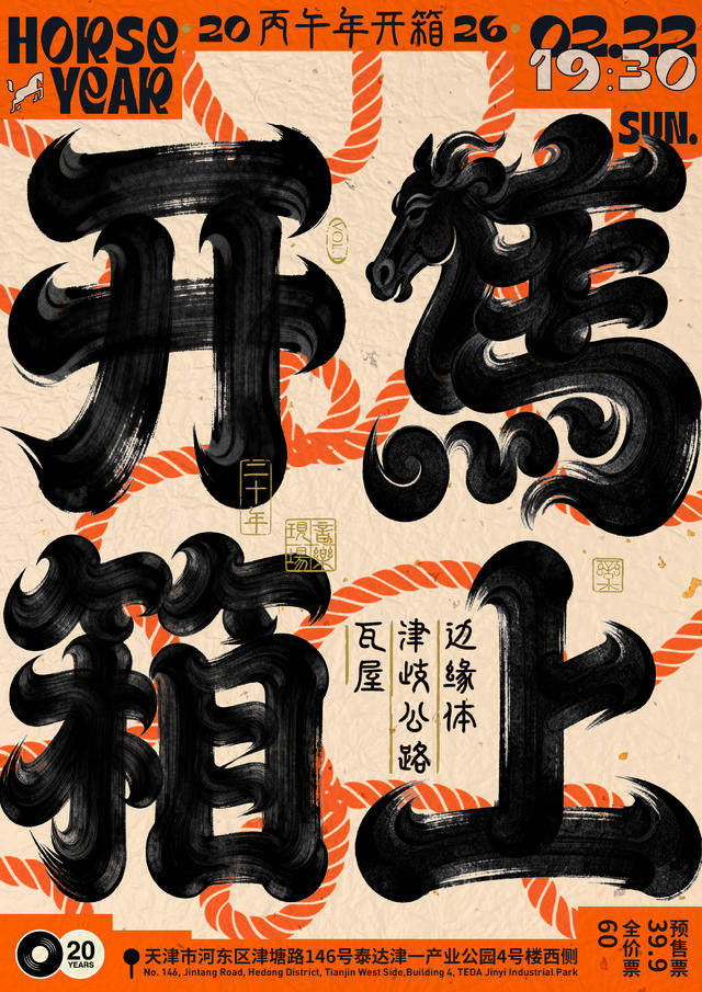 演出名称:【天津】二十年音乐现场 丙午年开箱系列演出 VOL.1【网上订票】演出时间:2026.02.22 周日 19:30