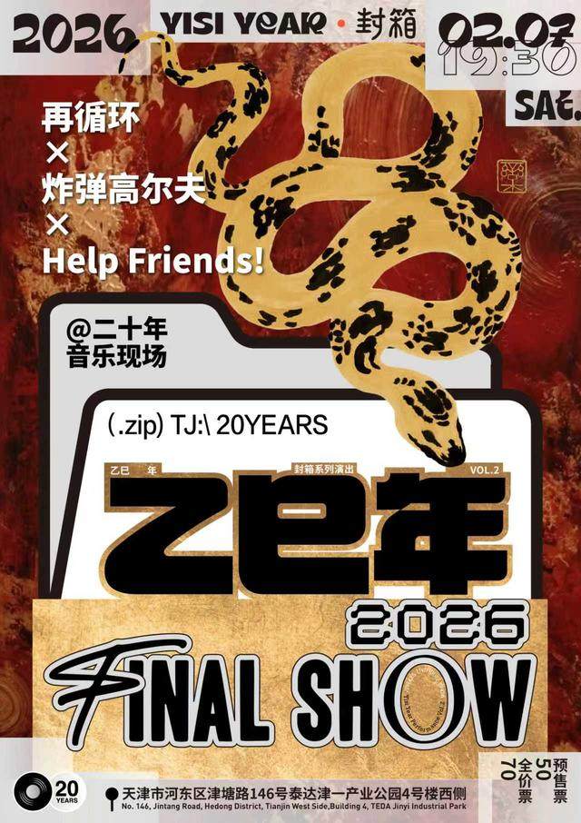 演出名称:【天津】二十年音乐现场 乙巳年封箱系列演出VOL.2【网上订票】演出时间:2026.02.07 周六 19:30