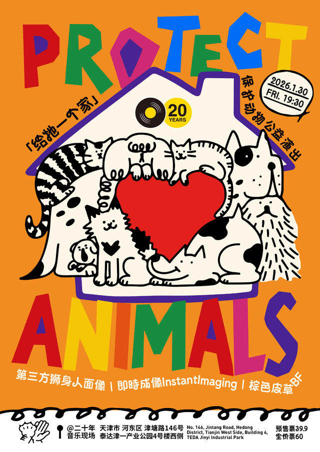 演出名称:【天津】「给牠一个家」保护动物公益演出【网上订票】演出时间:2026.01.30 周五 19:30