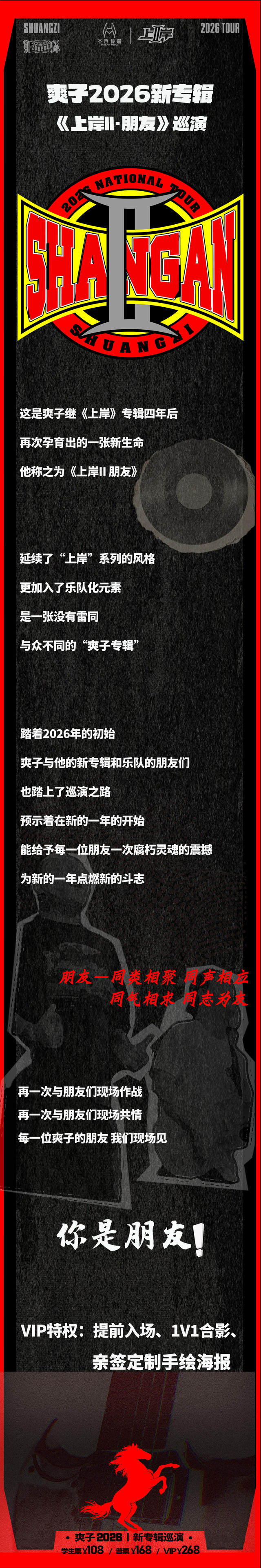 演出名称:【天津】爽子新专辑《上岸II》巡演-天津站【网上订票】演出时间:2026.03.07 周六 20:00
