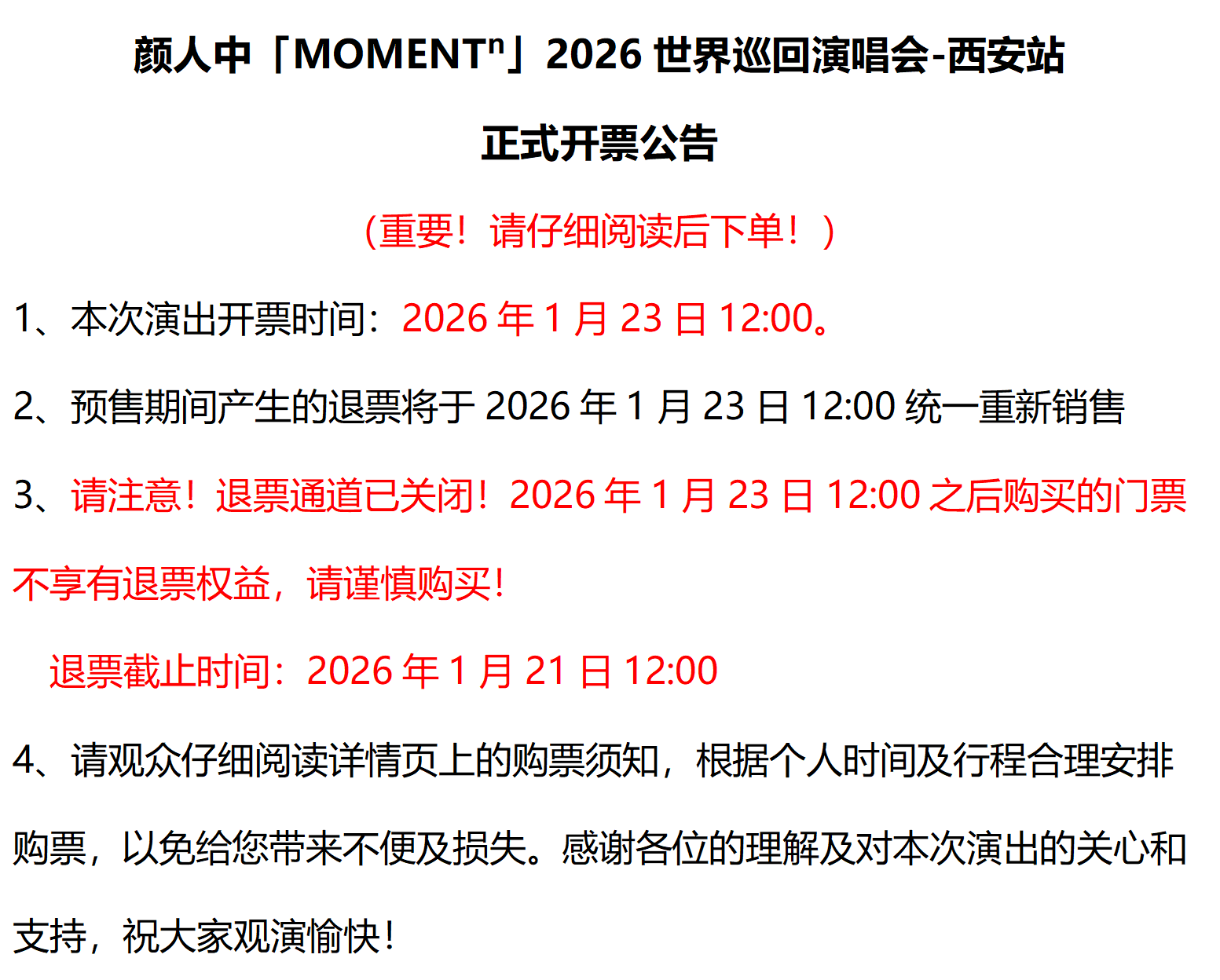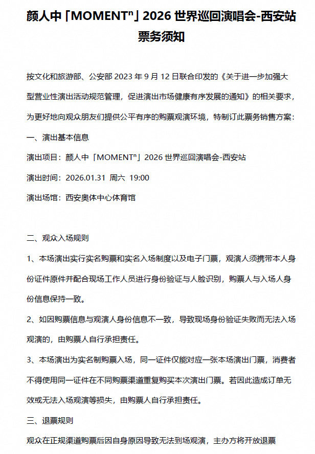 演出名称:【西安】颜人中「MOMENT?」2026世界巡回演唱会-西安站【网上订票】演出时间:2026.01.31 周六 19:00