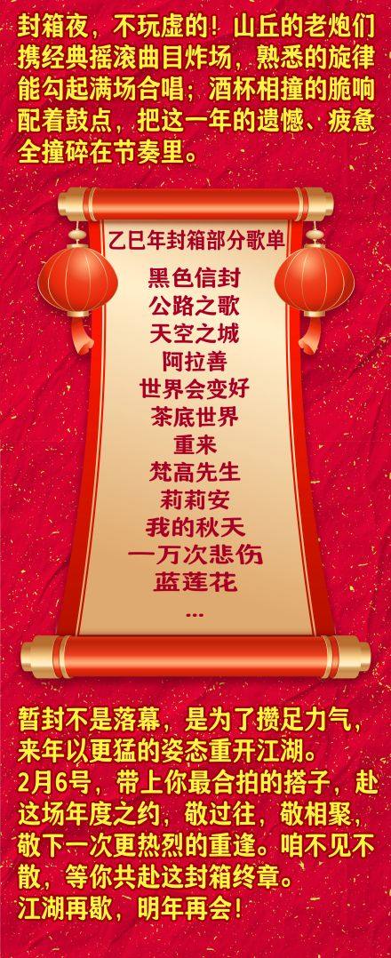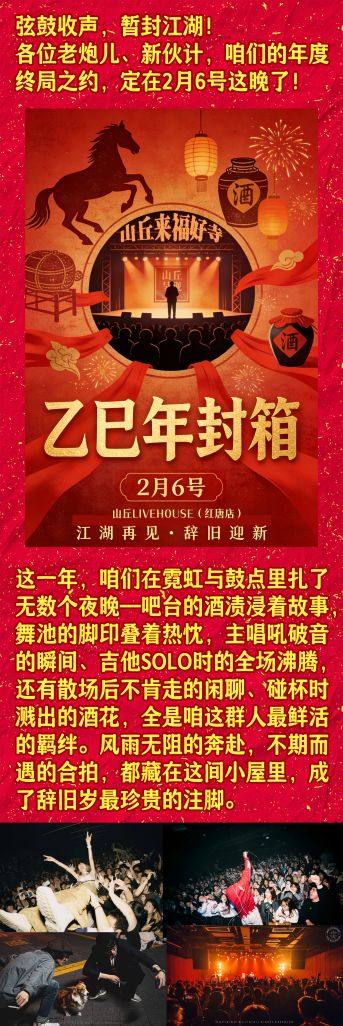 演出名称:【苏州】【山丘乙巳年封箱】摇滚专场【网上订票】演出时间:2026.02.06 周五 20:30