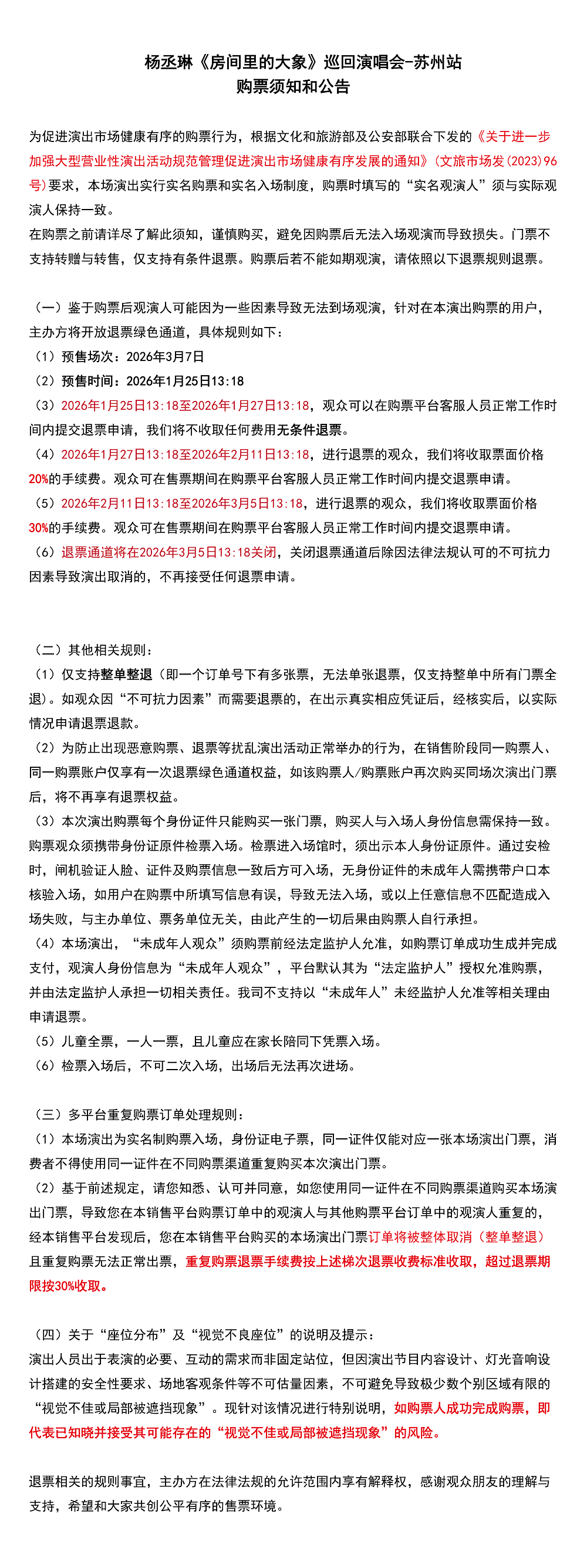 演出名称:【苏州】杨丞琳《房间里的大象》巡回演唱会-苏州站【网上订票】演出时间:2026.03.07 周六 19:00