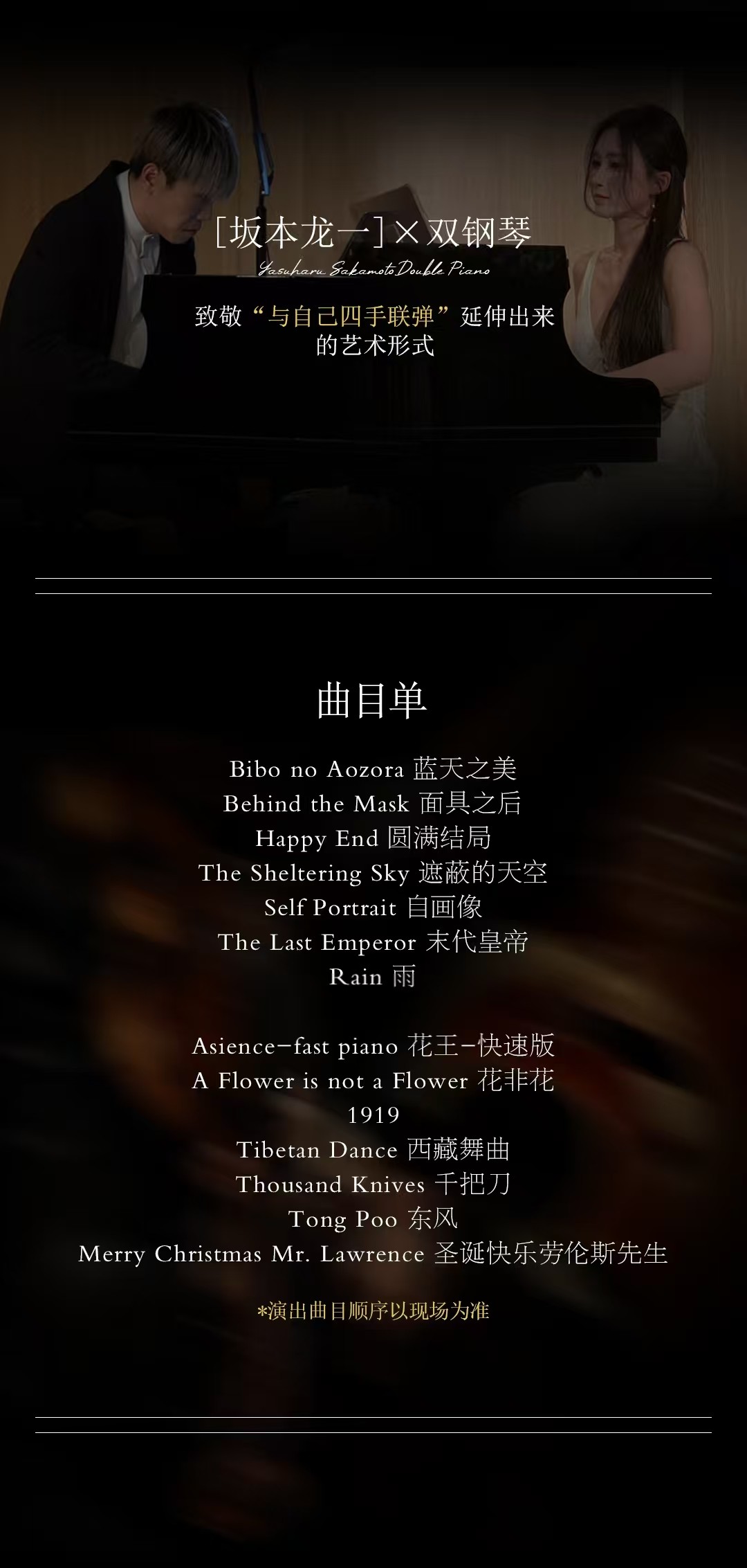 【北京】空灵 禅蕴「坂本龙一」经典名曲音乐会|圣诞快乐劳伦斯先生|约会打卡|家庭亲子|钢琴|小提琴