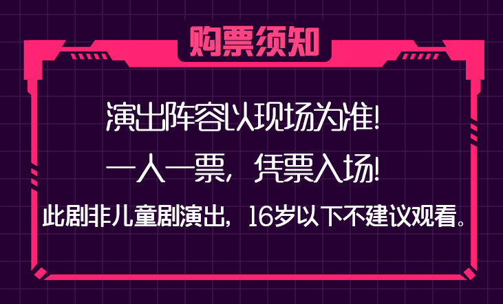 • 1.购买前请您提前规划好行程,做好相应准备,以免影响您的正常观演,感谢您的理解和配合。