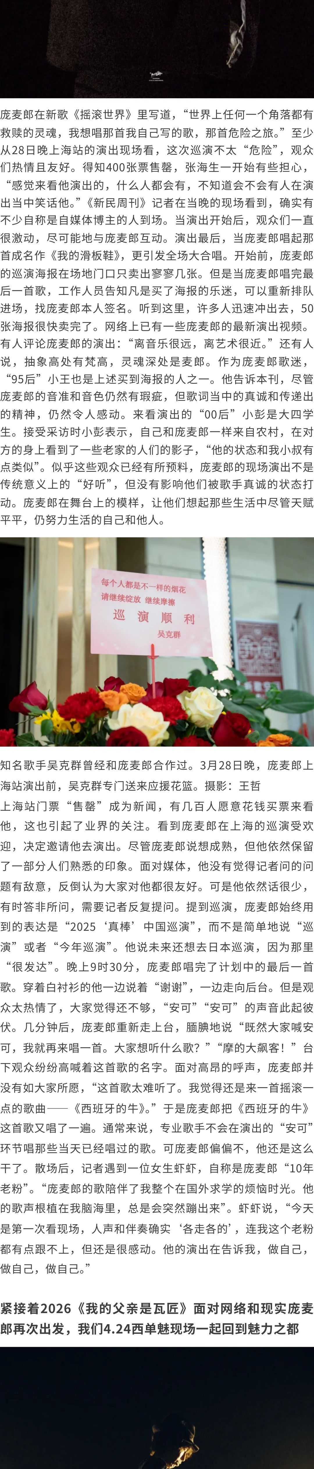 我的父亲是瓦匠 庞麦郎2026巡演北京首站