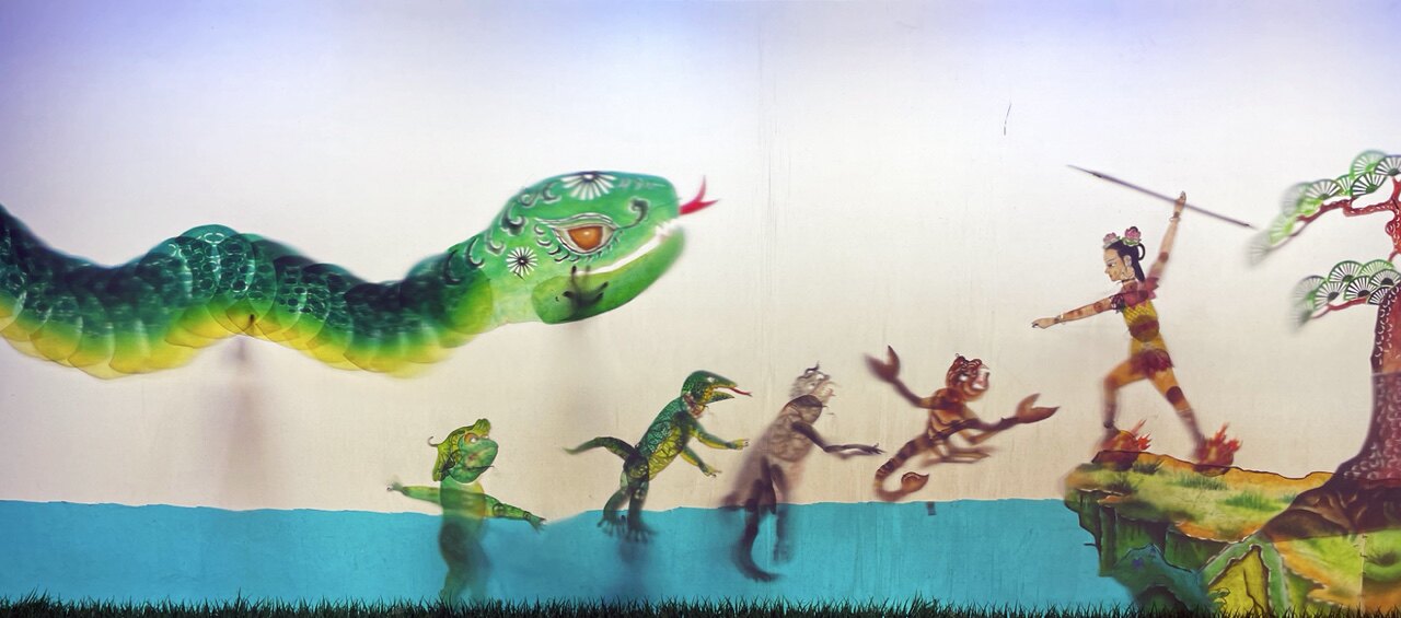 背景:盛夏时节,通州码头。开槽节隆重举办,锣鼓喧天。通州张家湾皮影戏非遗传承人老周,开漕节这天,运河游船上要演出皮影戏,希望孙子周兴传承皮影手艺,10岁的孙子周兴,喜欢打游戏,不想继承他的手艺。老周说服孙子,到运河船上,帮他演一出皮影戏《运河神话》,锣鼓响起,周兴扮演蚆夏,浆声灯影运河行,水雾弥漫,驶入运河深处,穿越到古代……
