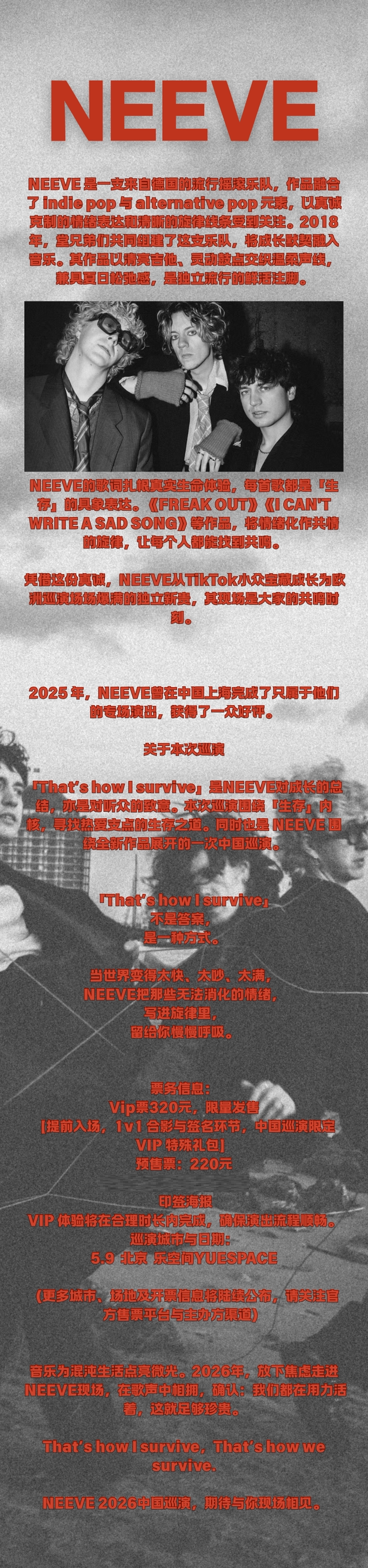 3.商品预售期间,票价调整及最终销售数量将由主办方和演出场馆确定,正式开票后将根据用户付款的先后顺序依次配票。我们会尽量满足用户需求,如最终未能配票,购票通承诺全额退款,敬请谅解。