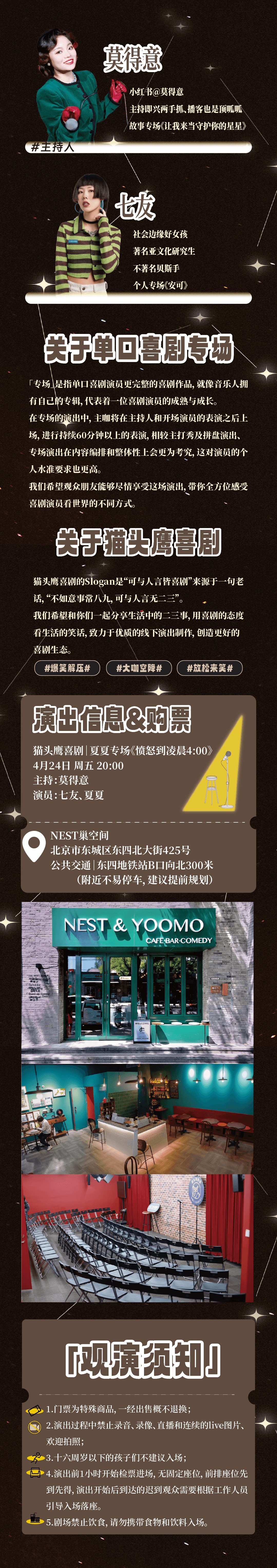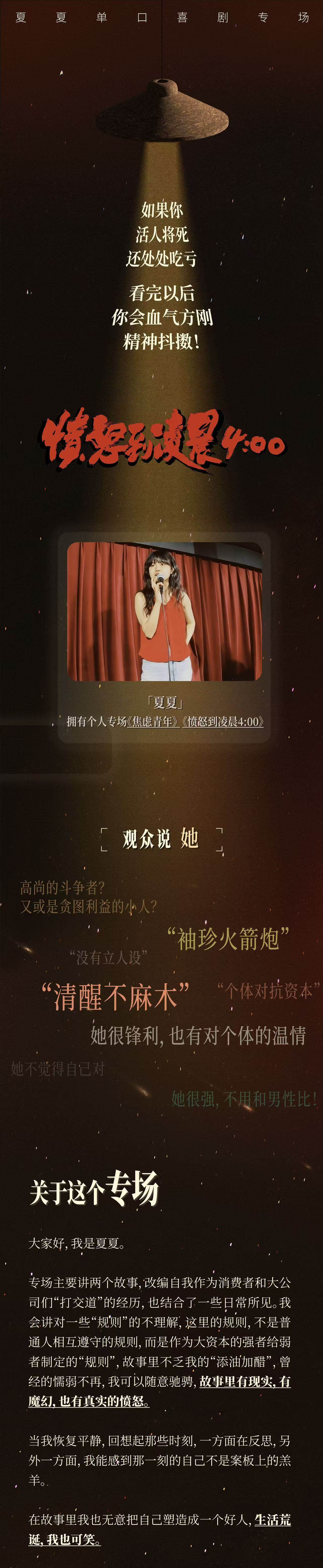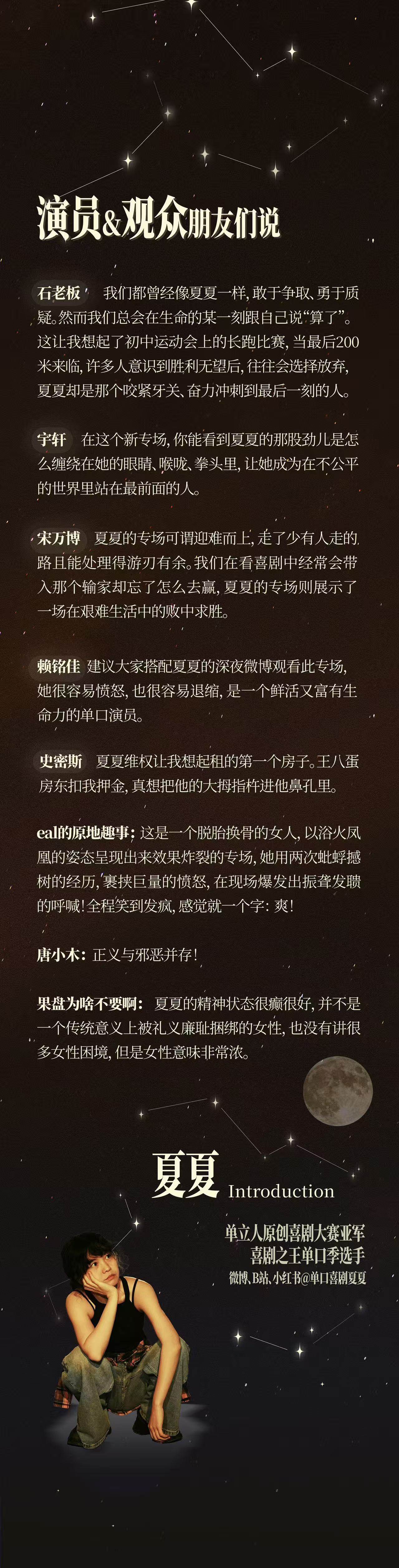 【北京】猫头鹰喜剧丨夏夏单口喜剧专场《愤怒到凌晨4:00》喜剧之王单口季卡司@东四
